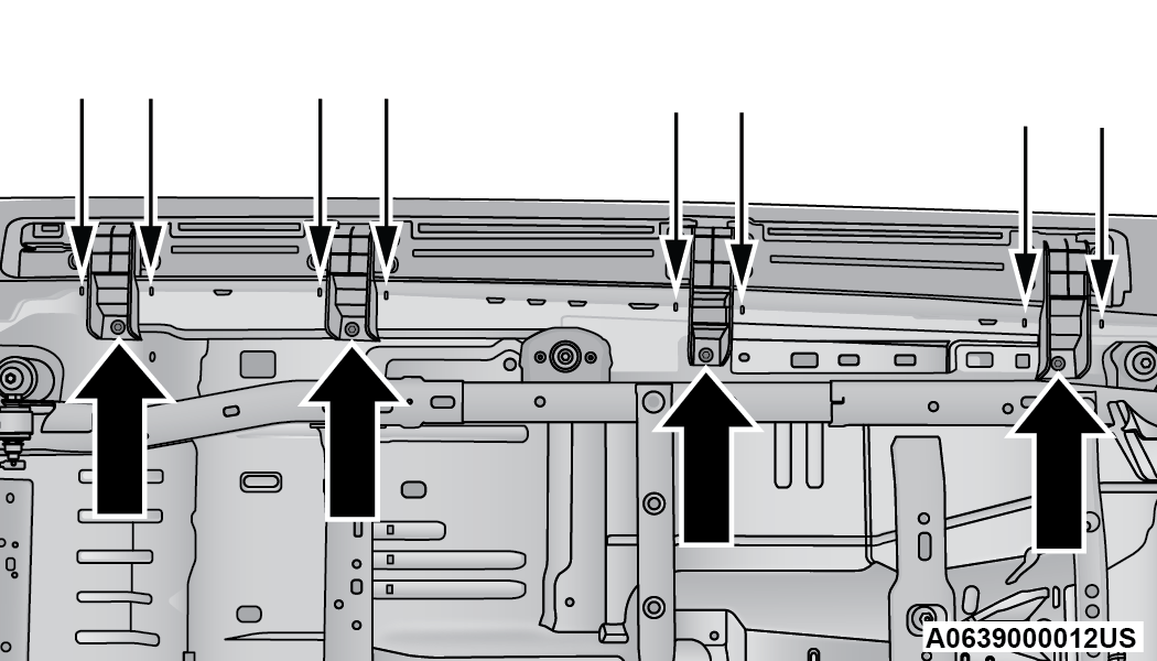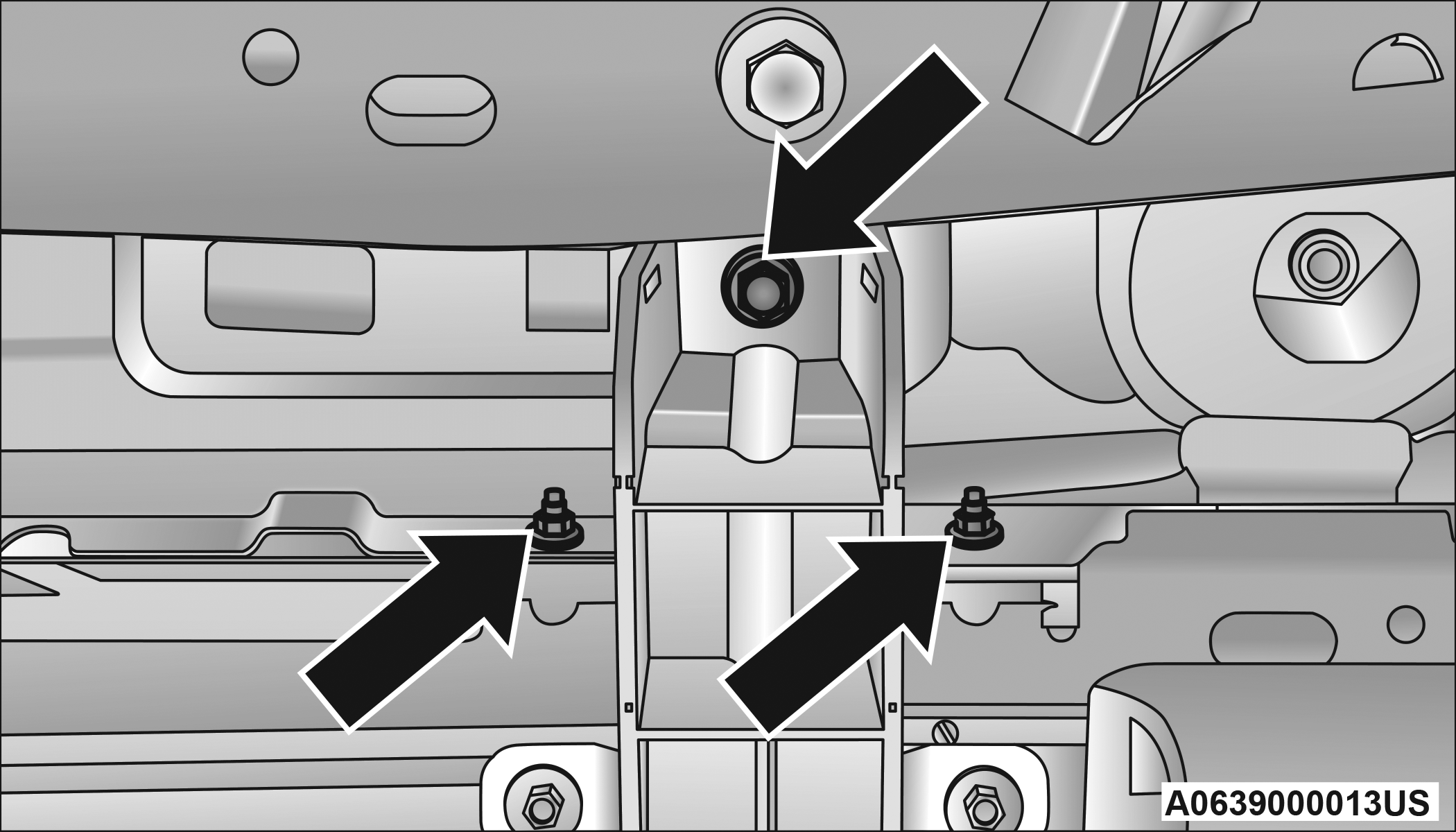 To reinstall the side steps align the studs to the body side holes and fasten all nuts on all four brackets. Then secure all four bolts to the underbody. Repeat the reassembly procedure for the other side.
