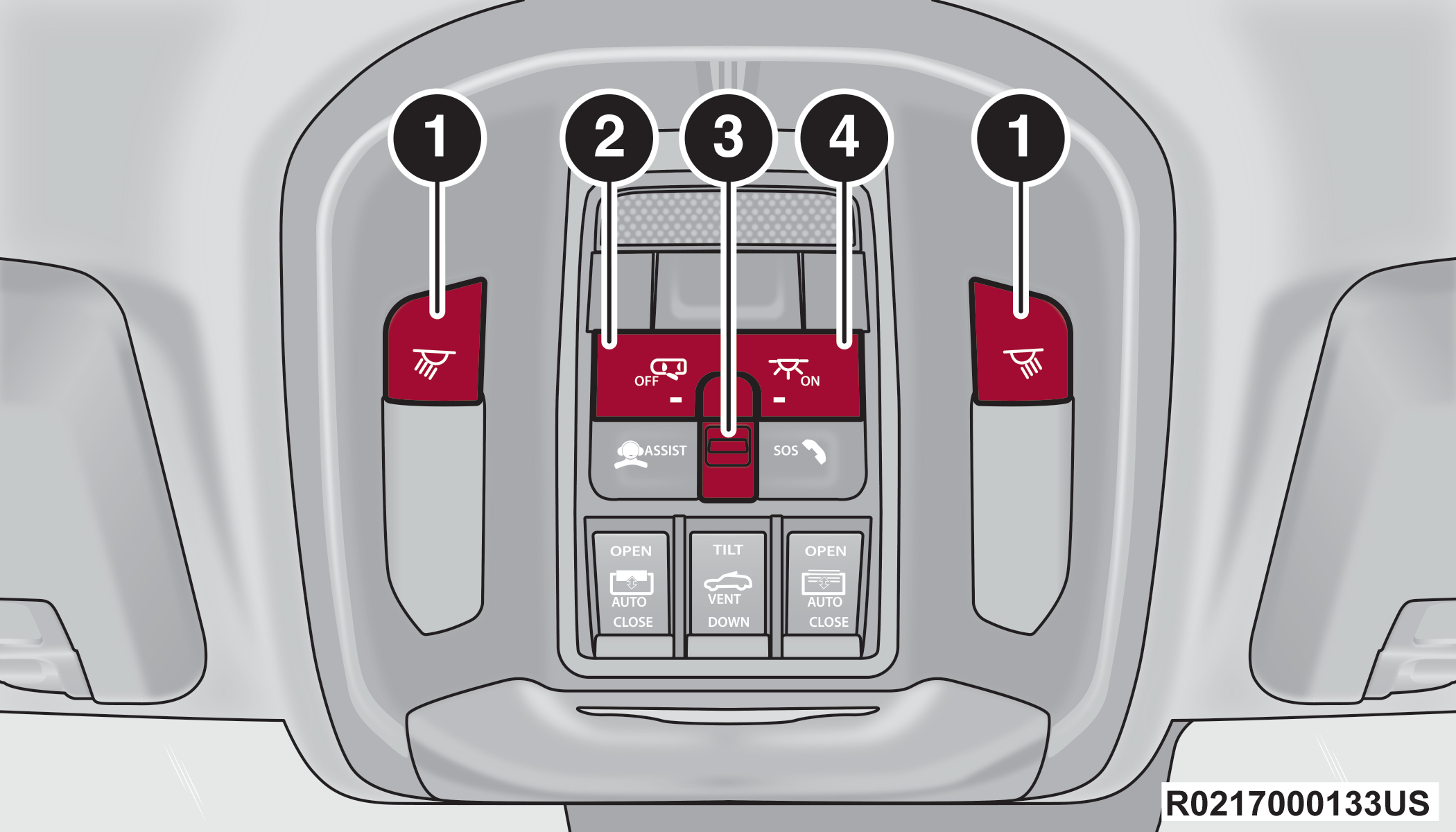 1 — Reading Light On/Off Buttons |