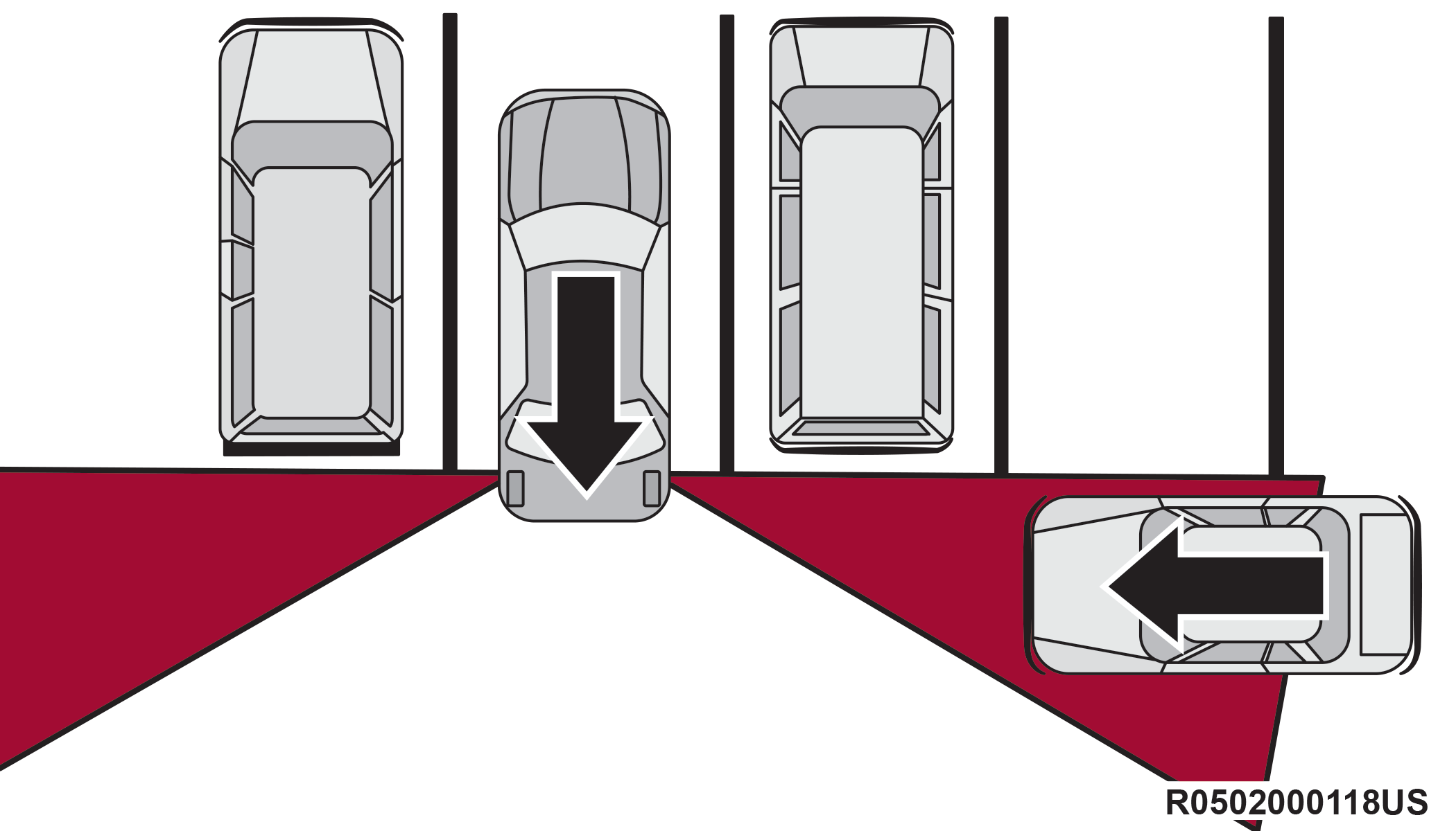 RCP is intended to aid the driver when backing out of parking spaces where their vision of oncoming vehicles may be blocked. Proceed slowly and cautiously out of the parking space until the rear end of the vehicle is exposed. The RCP system will then have a clear view of the cross traffic and if an oncoming vehicle is detected, alert the driver.
